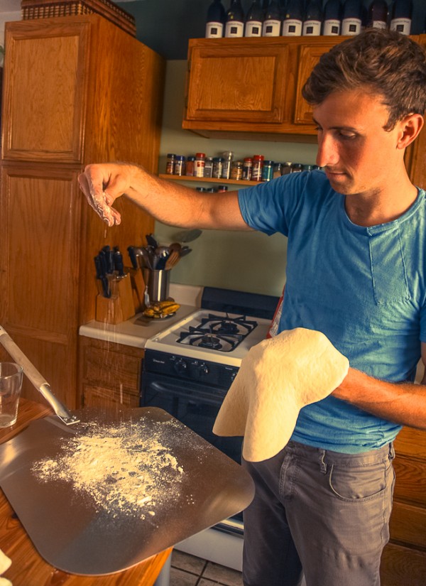 We’ve been making pizza long before our pizza oven came around (but it was way less awesome), so Chris has gotten really good at rolling and tossing pizza dough. Here’s some photos of the pizza-making fun.