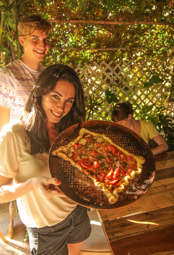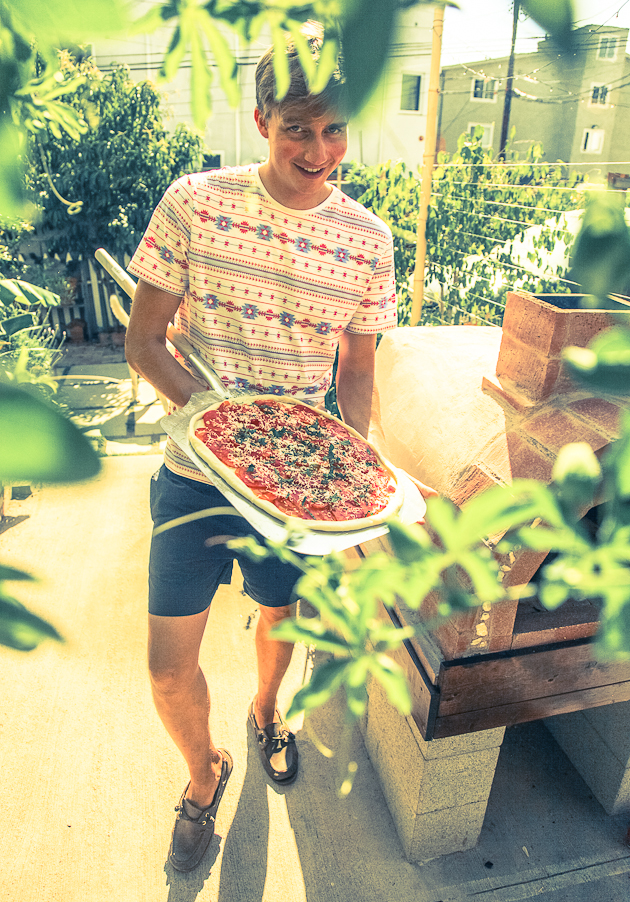Summer was a good time for this project, as we have tons of tomatos, garlic, herbs, and other yummy veggies growing in the garden, for us to use as pizza toppings. We even had enough tomatos to make our very own pizza sauce—yum!