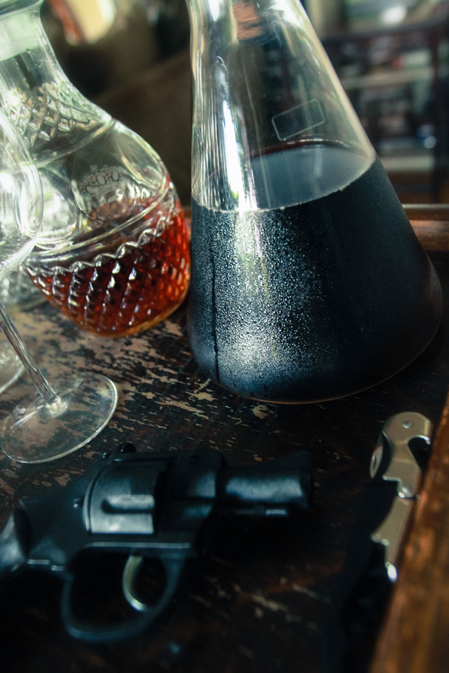 We had a ton of fun setting up, taking photos, and then investigating the murder.  Each couple was in charge of bringing a different dish (cheese/crackers, drinks, main, dessert) so the entire event was a breeze (other than all the murder and finger-pointing of course).