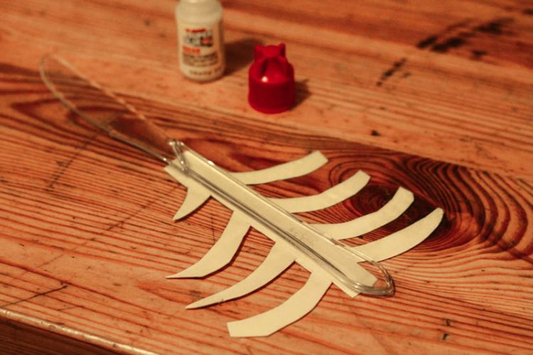 3. Attach the ribs to a good solid piece of plastic (like a plastic knife) with glue or tape.