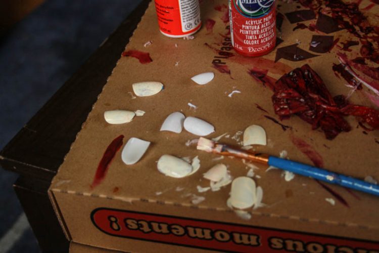 12. For his teeth, I used some old fake nails that I painted a dirty white color.